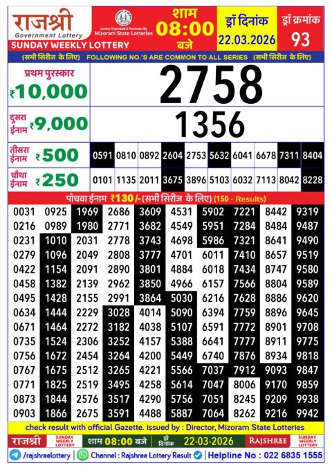 Rajshree Lottery Result 5:40 PM – 22 March 2026 – Live Draw & Winners