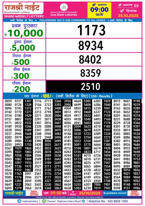 Rajshree Night Lottery 9pm Result 25 October 2025