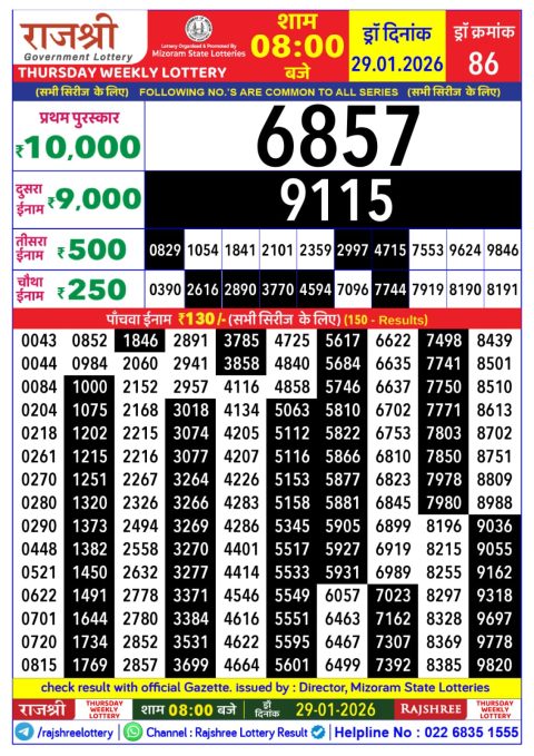 Rajshree Lottery 8 PM Result – 29 January 2026 – Live Draw & Winners