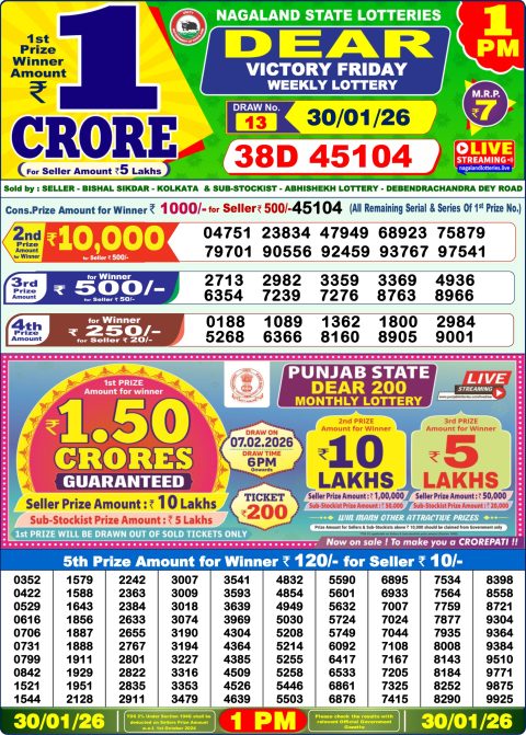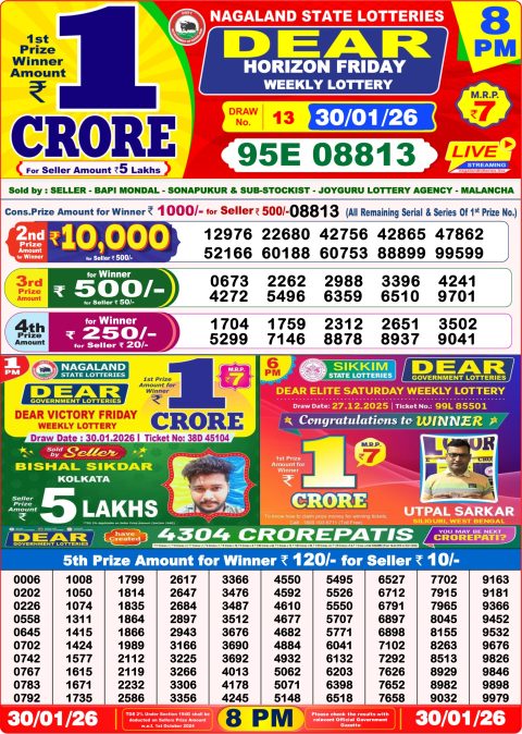 Dear Lottery 1 PM Result Today – 30 January 2026 – Live Draw & Winners
