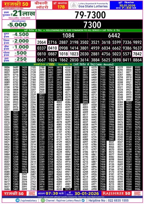 Rajshree 50 Lottery Result Today 7:30 PM – 30 January 2026 – Live Draw