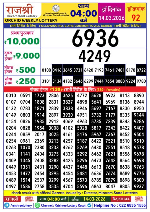 Rajshree Lottery Result Today 4 PM – 14 March 2026 – Live Draw & Winners