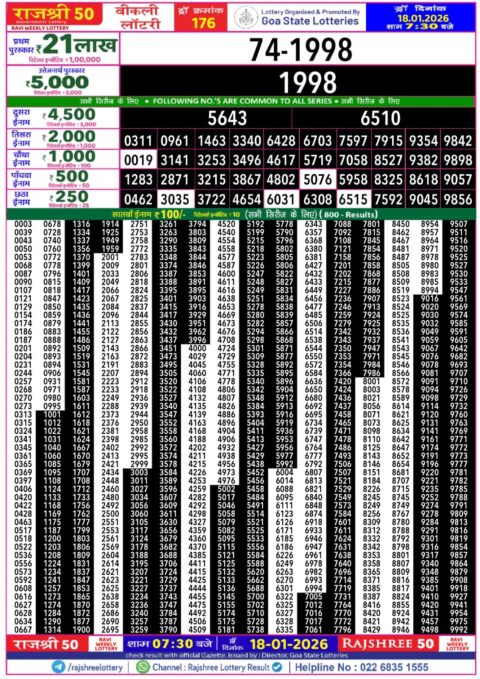 Rajshree 50 Lottery Result Today 7:30 PM – 18 January 2026 – Live Draw