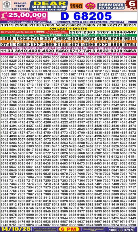 Punjab State Dear 50 Lottery Result – 6 PM Draw – 14 October 2025 – Live Draw & Winnersr