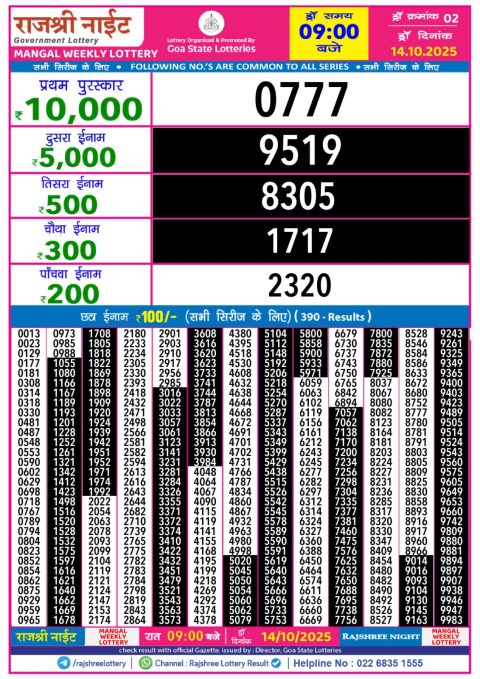 Rajshree 500 Monthly Result 14 October 2025