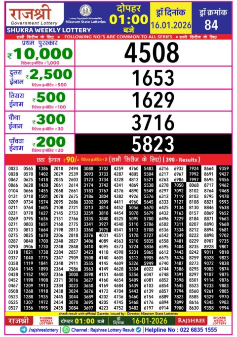 Rajshree Lottery Result 1 PM – 16 January 2026 – Live Draw & Winners