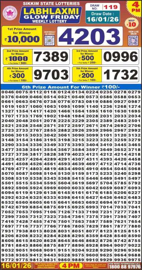 LabhLaxmi Lottery Result Today 4 PM – 16 January 2026 – Live Draw & Winners