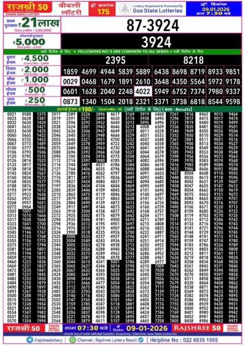 Rajshree Lottery Result 1 PM – 09 January 2026 – Live Draw & Winners