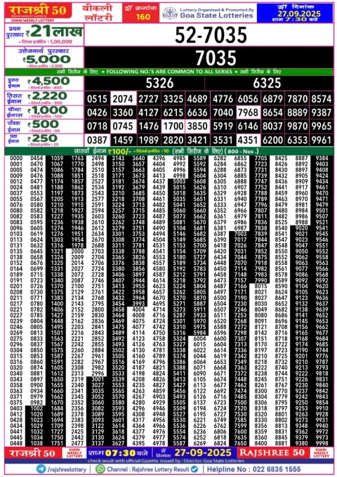 Rajshree 50 Lottery Result Today 7:30 PM – 27 September 2025 – Live Draw &