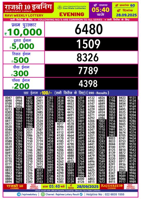 Rajshree Lottery Result 5:40 PM – 28 September 2025 – Live Draw & Winners