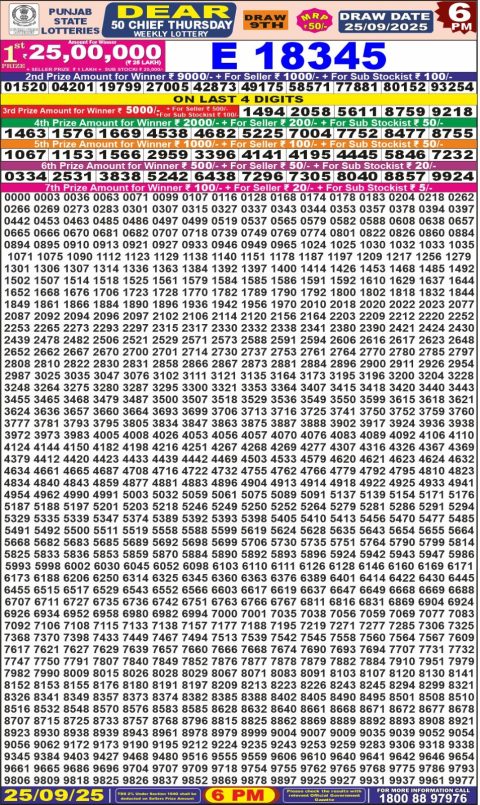 Punjab State Dear 50 Lottery Result – 6 PM Draw – 25 September 2025 – Live Draw & Winners