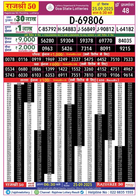 Rajshree 50 Monthly Lottery Result 25 September 2025