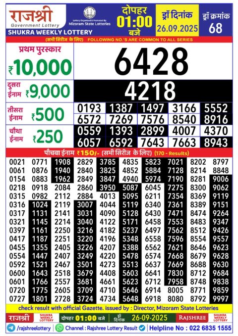 Rajshree Lottery Result 1 PM – 26 September 2025 – Live Draw & Winners