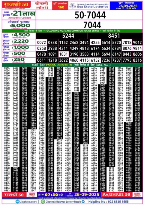 Rajshree 50 Lottery Result Today 7:30 PM – 26 September 2025 – Live Draw &