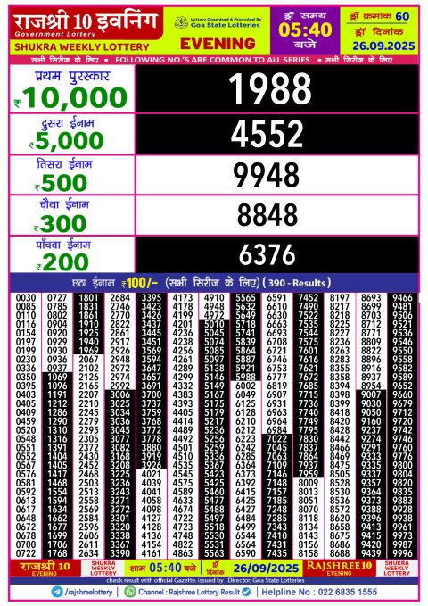 Rajshree Lottery Result 5:40 PM – 26 September 2025 – Live Draw & Winners