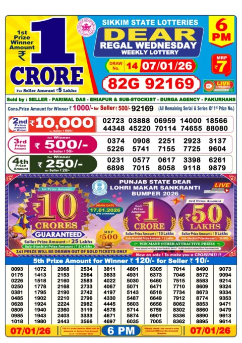 Dear Lottery 1 PM Result Today – 07 January 2026 – Live Draw & Winners