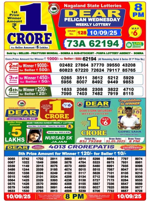 Dear Lottery 8 PM Result – 10 September 2025 – Live Draw & Winners