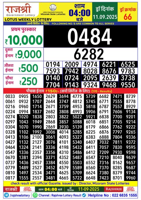Rajshree Lottery Result Today 4 PM – 11 September 2025 – Live Draw & Winners