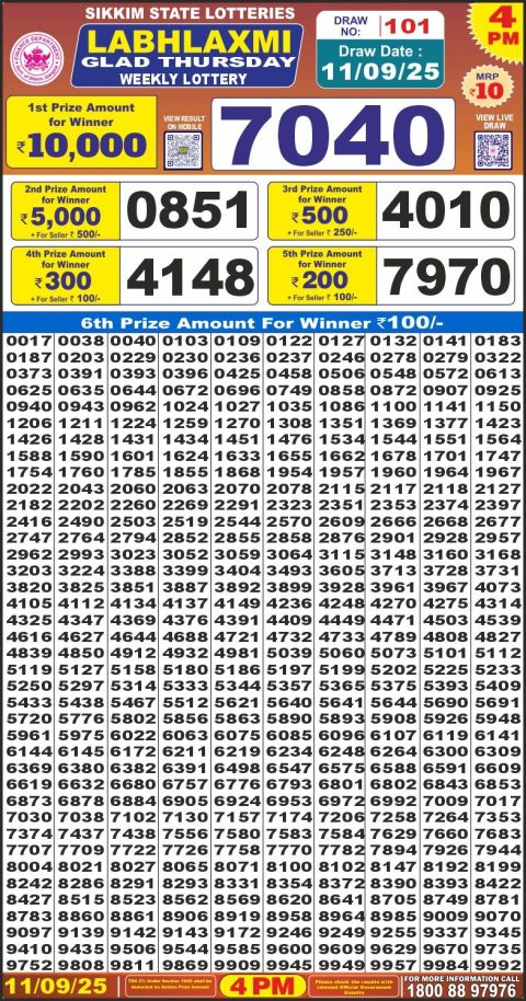 Labh Laxmi Lottery Result Today 4 PM – 11 September 2025 – Live Draw & Winners