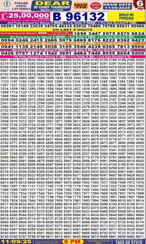 Punjab State Dear 50 Lottery Result – 6 PM Draw – 11 September 2025 – Live Draw & Winners