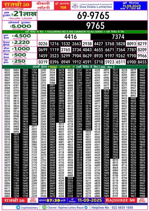 Rajshree 50 Lottery Result Today 7:30 PM – 11 September 2025 – Live Draw &