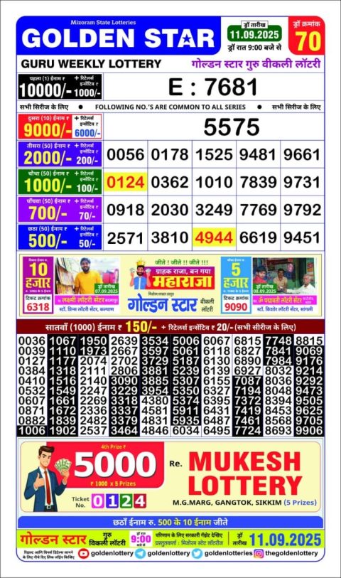 Golden Star Lottery Result 9 PM Today – 11 September 2025 – Live Draw & Winners