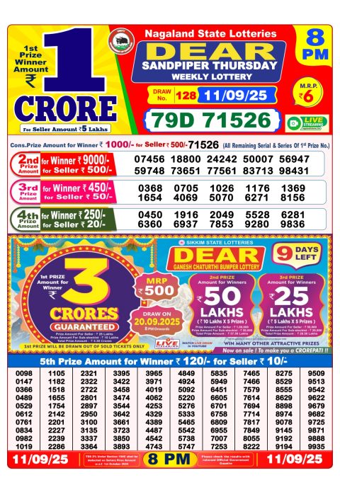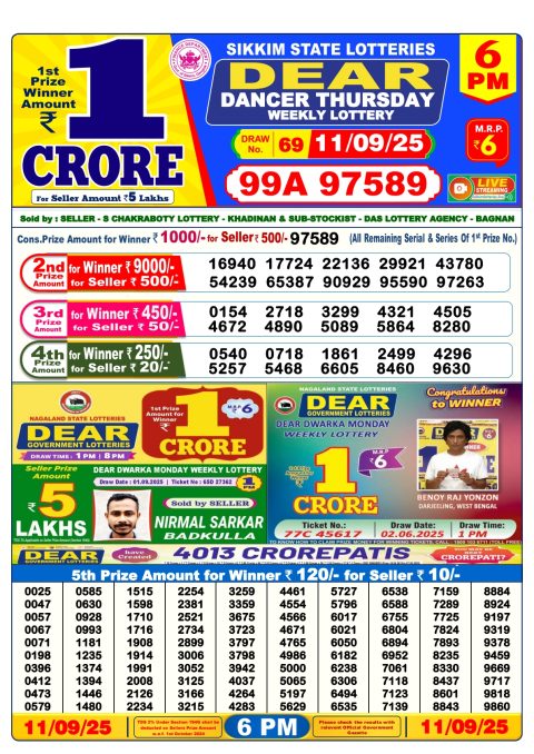 Dear Lottery Result 6 PM – 11 September 2025 – Live Draw & Winners