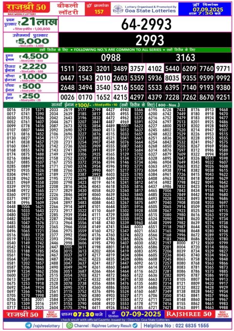 Rajshree 50 Lottery Result Today 7:30 PM – 7 September 2025 – Live Draw &