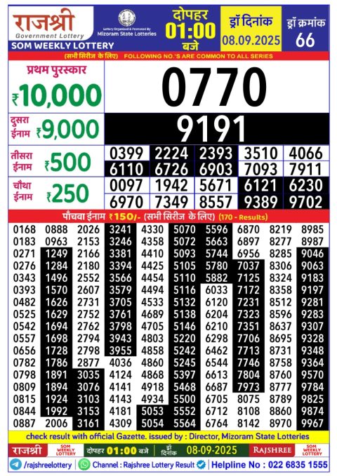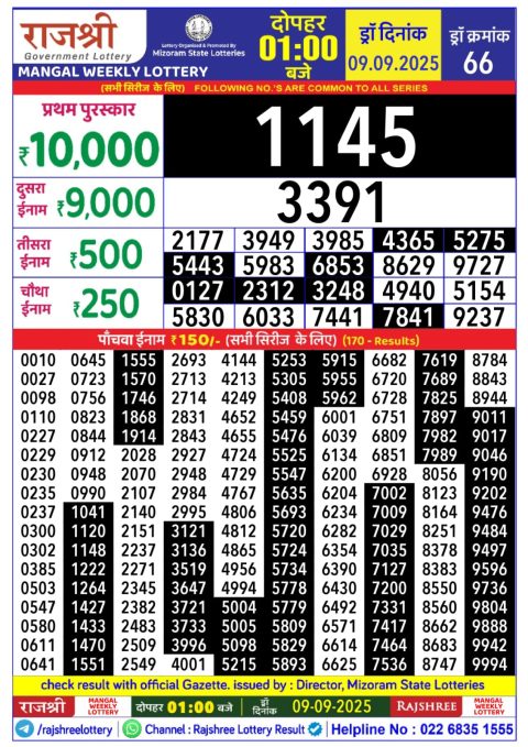 Rajshree Lottery Result 1 PM – 9 September 2025 – Live Draw & Winners
