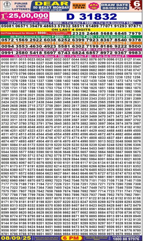 Dear Lottery 8 PM Result – 7 September 2025 – Live Draw & Winners