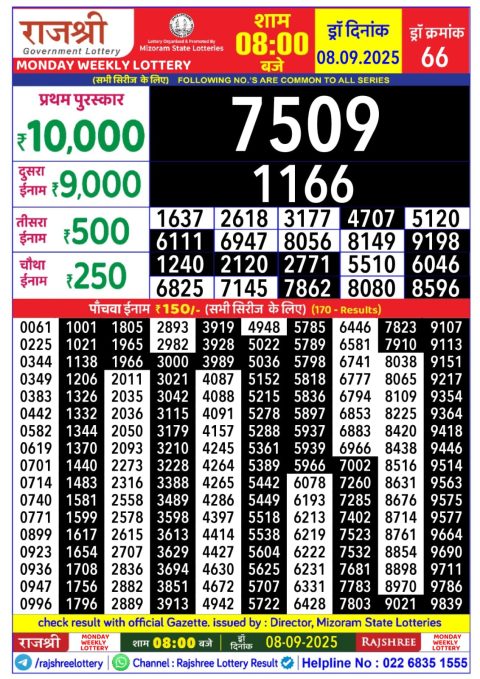 Rajshree Lottery 8 PM Result – 7 September 2025 – Live Draw & Winners