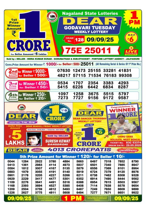 Dear Lottery 1 PM Result Today – 9 September 2025 – Live Draw & Winners