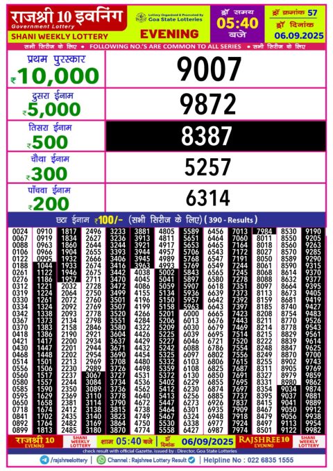 Rajshree Lottery Result 5:40 PM – 6 September 2025 – Live Draw & Winners