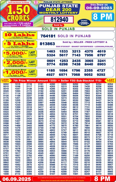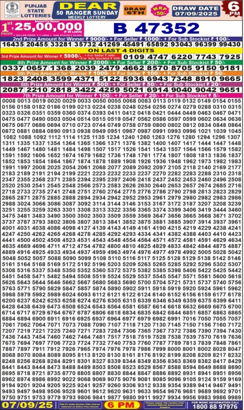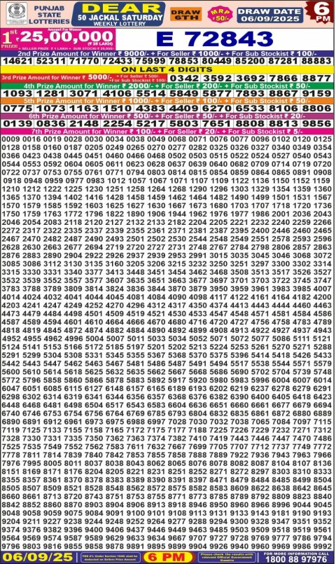 Dear Lottery Result 6 PM – 7 September 2025 – Live Draw & Winners