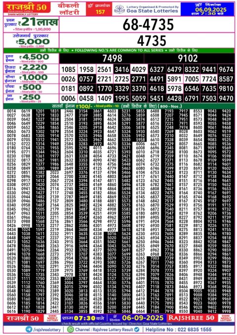 Rajshree 50 Lottery Result Today 7:30 PM – 6 September 2025 – Live Draw &