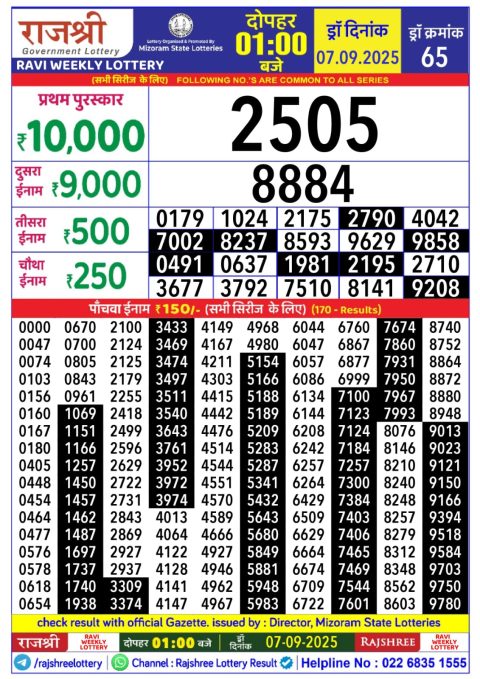 Rajshree Lottery Result 1 PM – 7 September 2025 – Live Draw & Winners
