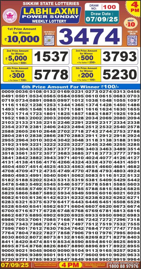 Labh Laxmi Lottery Result Today 4 PM – 7 September 2025 – Live Draw & Winners