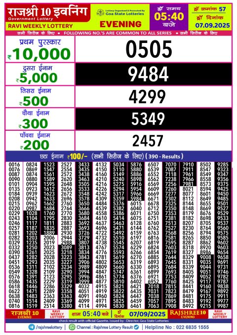 Rajshree Lottery Result 5:40 PM – 7 September 2025 – Live Draw & Winners