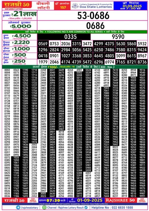 Rajshree 50 Lottery Result Today 7:30 PM – 1 September 2025 – Live Draw &