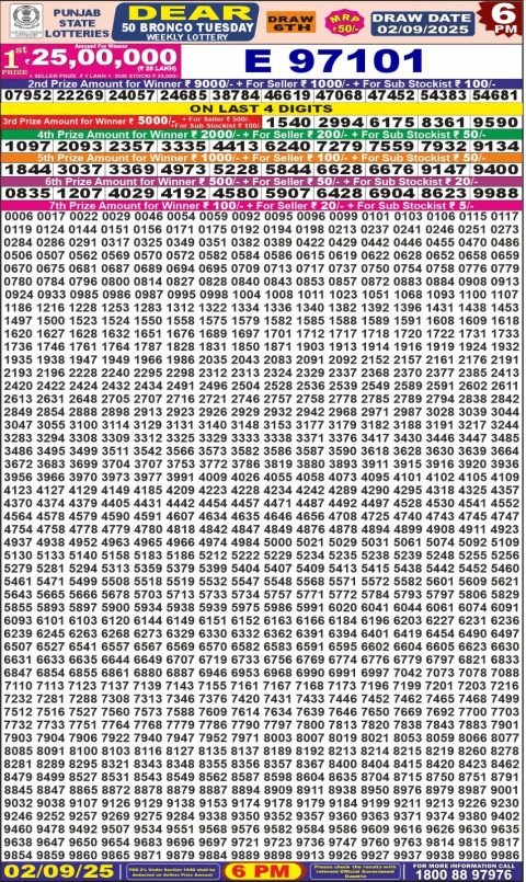 Punjab State Dear 50 Lottery Result – 6 PM Draw – 2 September 2025 – Live Draw & Winners