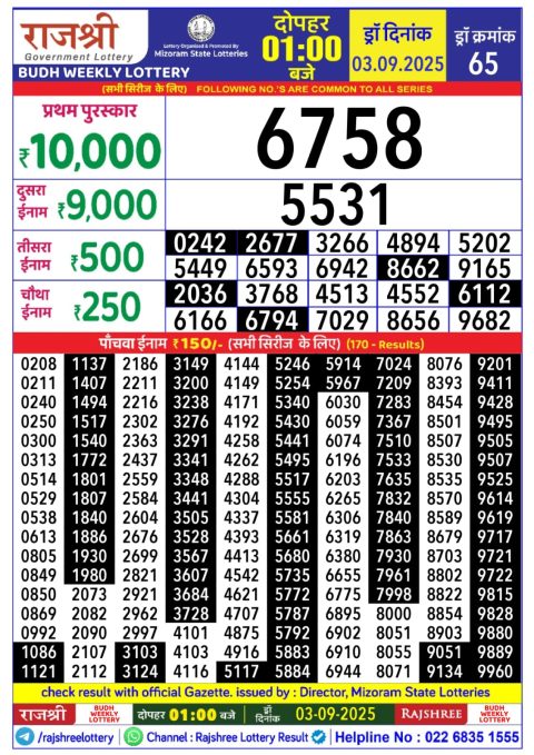 Rajshree Lottery Result 1 PM – 3 September 2025 – Live Draw & Winners