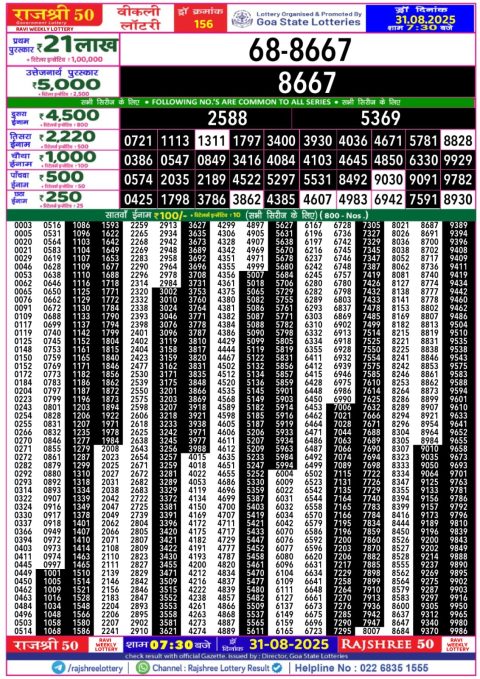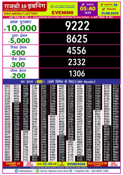Rajshree Lottery Result 5:40 PM – 31 August 2025 – Live Draw & Winners
