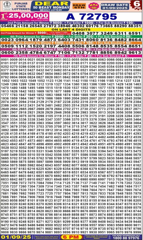 Punjab State Dear 50 Lottery Result – 6 PM Draw – 1 September 2025 – Live Draw & Winners