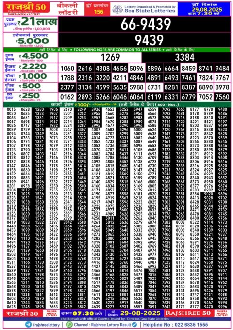 Rajshree 50 Lottery Result Today 7:30 PM – 29 August 2025 – Live Draw &