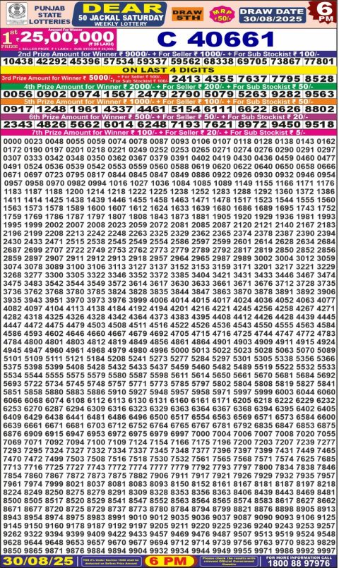 Punjab State Dear 50 Lottery Result – 6 PM Draw – 30 August 2025 – Live Draw & Winners