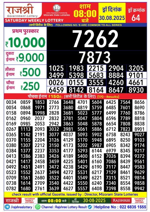 Rajshree Lottery Result 5:40 PM – 30 August 2025 – Live Draw & Winners
