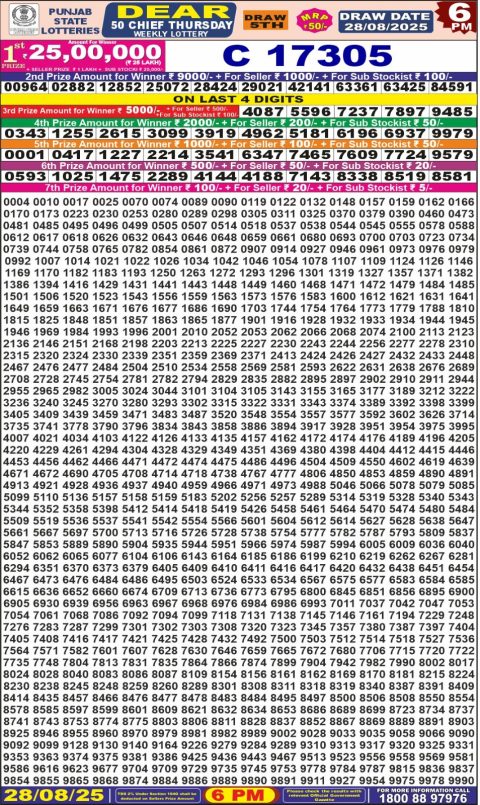 Punjab State Dear 50 Lottery Result – 6 PM Draw – 28 August 2025 – Live Draw & Winners