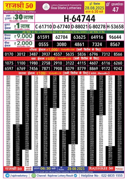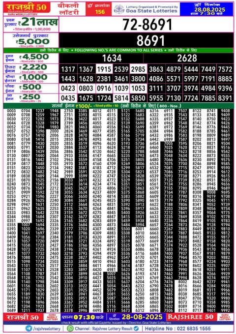 Rajshree 50 Lottery Result Today 7:30 PM – 28 August 2025 – Live Draw &