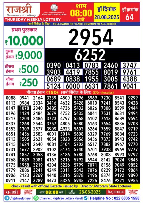 Rajshree Lottery Result 5:40 PM – 28 August 2025 – Live Draw & Winners