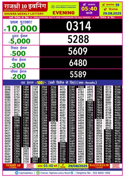 Rajshree Lottery Result 5:40 PM – 29 August 2025 – Live Draw & Winners